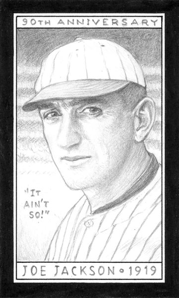 Series Black Sox scandal sketch card sub set on eBay October 1 - 9 (with auctions ending October 8 - 16). This set celebrates the 90th anniversary of the infamous 1919 World Series scandal that led to the banishment of 8 Chicago White Sox players for their role in fixing the series in favor of the Cincinnati Reds.