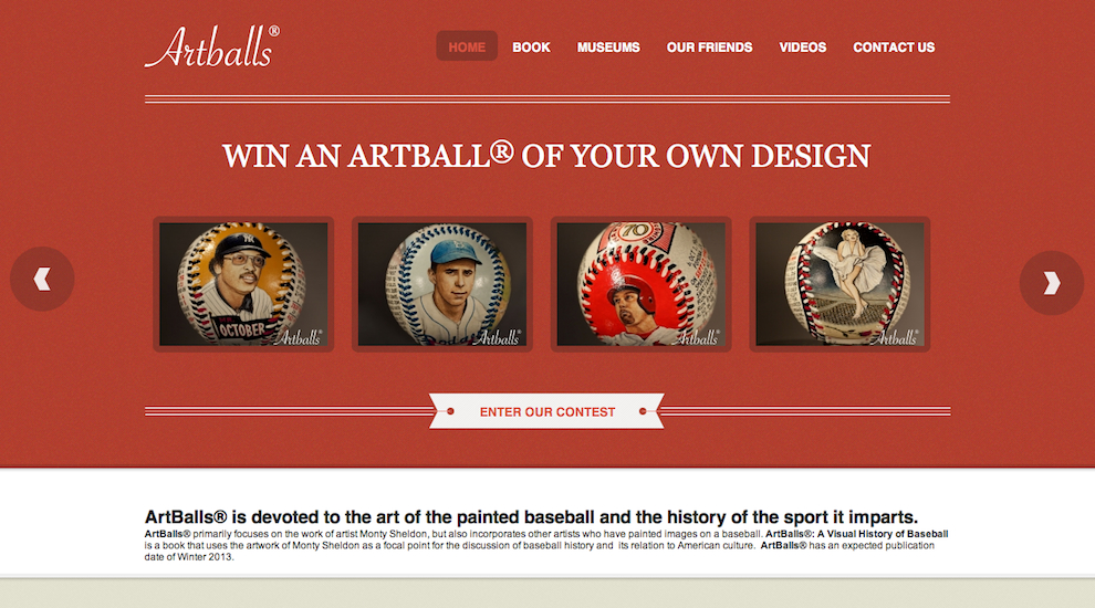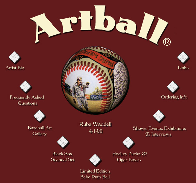 * NEWS ITEM * - My friend and avid Artball® collector, Jay Caldwell, has started a web site, artballs.com, in order to promote his upcoming book, ArtBalls®: A Visual History of Baseball. This book will feature my baseball art throughout and will aid Jay in his discussion of baseball history and its relation to American culture. The book has an expected publication date of Winter 2013. Stay tuned!