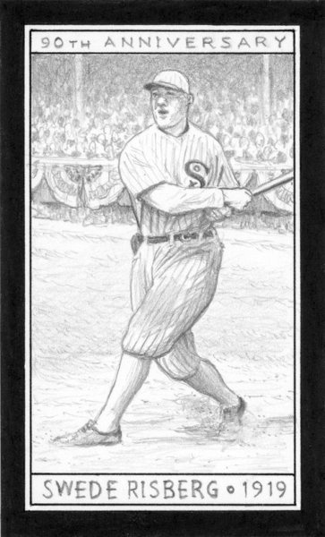 Series Black Sox scandal sketch card sub set on eBay October 1 - 9 (with auctions ending October 8 - 16). This set celebrates the 90th anniversary of the infamous 1919 World Series scandal that led to the banishment of 8 Chicago White Sox players for their role in fixing the series in favor of the Cincinnati Reds.